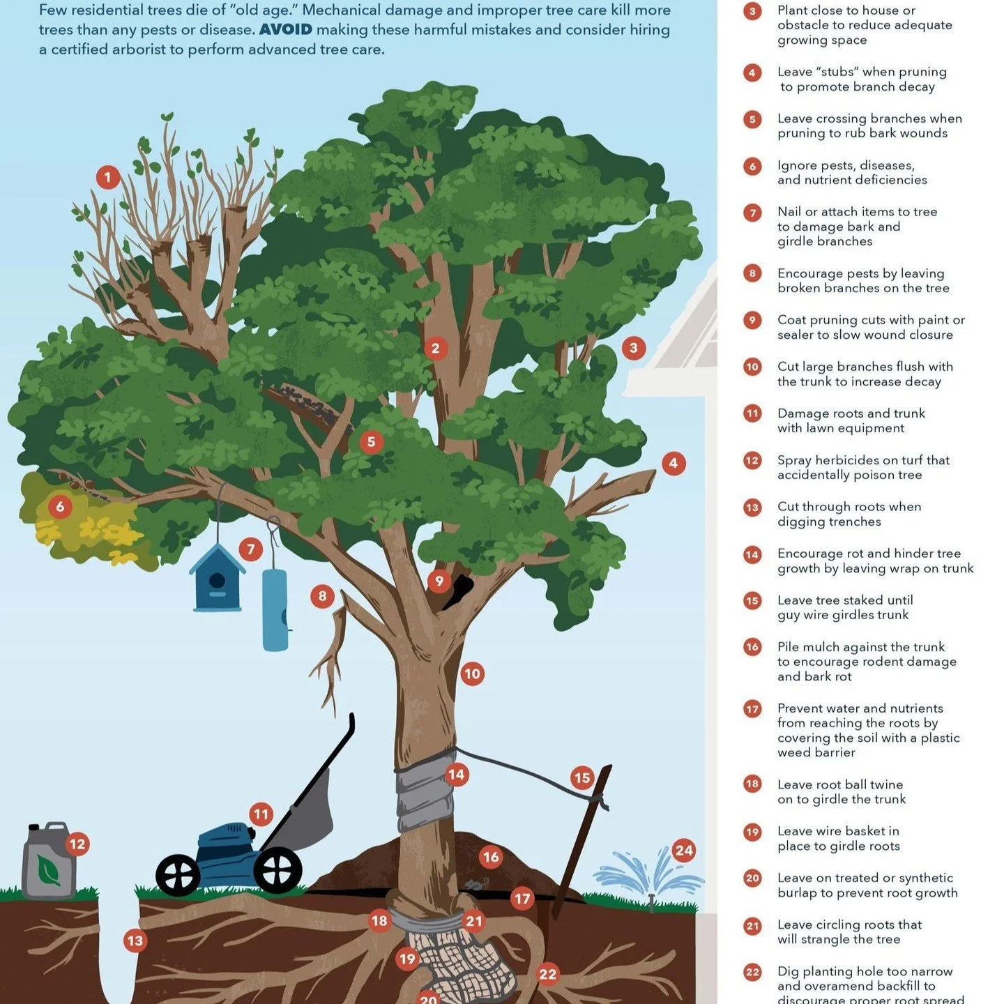 Let’s face it, you could have your trees pruned for much cheaper by a gardener, or even an uncertified tree company. However, you would be risking the health of the tree and the safety of the buildings and people around it. Bad pruning not only looks bad, but it can cause damage to the tree, weakening the branches and sometimes even causing damage from root to tip. Removing too much of a tree can cause the tree to be in a state of stress similar to a human’s fight or flight mode. You can see evidence of this when small branches called “suckers” grow back. This is evidence of the tree’s fight for survival. Weakened trees only survive a few more years. Weakened branches are the ones that rot from the inside and eventually fall. Bad tree work doesn’t just make a tree look like it’s in pain—it causes damage to the tree and could eventually kill it.